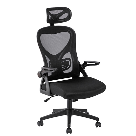 A8980 πολυθρόνα γραφείου με mesh ύφασμα στο κάθισμα μαύρου χρώματος καθώς επίσης και ανατομική πλάτη σε mesh ύφασμα χρώματος μαύρο για να αναπνέει η πλάτη.Διαθέτει προσκέφαλο για σωστή στήριξη του κεφαλιού και πτυσσόμενα μπράτσα,ρυθμιζόμενο ύψος,πλαστικό πόδι και ρόδες για εύκολη μετακίνηση.